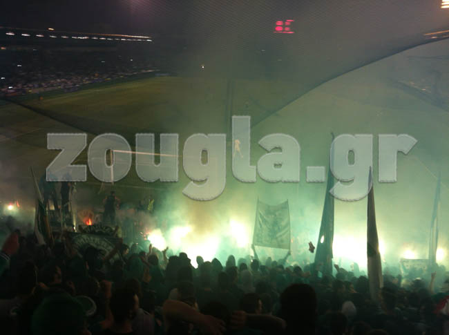 Το coreo της θύρας 13 διήρκησε πολλά λεπτά και δεν ήταν λίγοι αυτοί που αντί να κοιτούν στο γήπεδο απλά χάζευαν την κερκίδα των φανατικών οπαδών του Παναθηναϊκού.