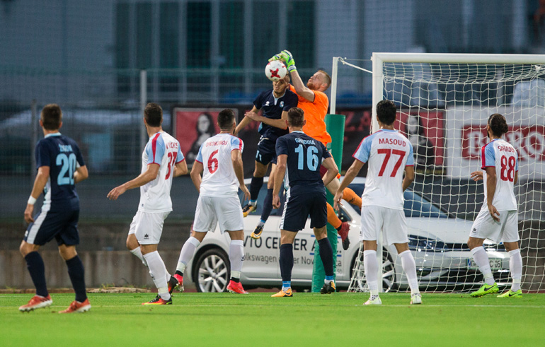 Τα γκολ για τους «κυανέρυθρους» σημείωσαν οι Μασούρας (11′), Γεσίλ (16′) και Λάμπρου (23′), ενώ οι Σλοβένοι ισοφάρισαν προσωρινά στο 15’ με πέναλτι του Κάπιτς, ενώ ο ίδιος παίκτης με δεύτερο πέναλτι σκόραρε και στο 67ο λεπτό. Να σημειωθεί ότι στη Σλοβενία βρέθηκαν 100 φίλοι του Πανιώνιου.