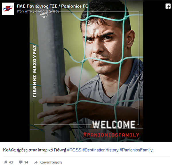 «Καλώς ήρθες στον Ιστορικό Γιάννη» ανέφερε ο «ιστορικός» στο μήνυμά του στα social media με το οποίο καλοσώρισε τον 22χρονο δεξιό μπακ-χαφ.