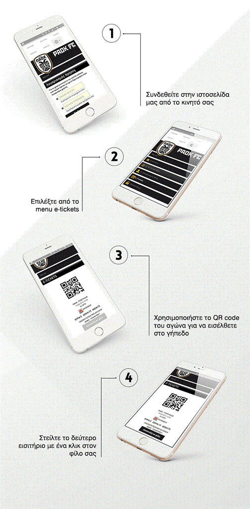 Όσοι φίλαθλοι έχουν προμηθευτεί εισιτήριο μέσω internet και έχουν επιλέξει την παραλαβή «print@home», μπορούν είτε να εκτυπώσουν το εισιτήριό τους σε εκτυπωτή είτε να εισέλθουν στο γήπεδο με το κινητό τους με τη χρήση της νέας λειτουργικότητας QR code.