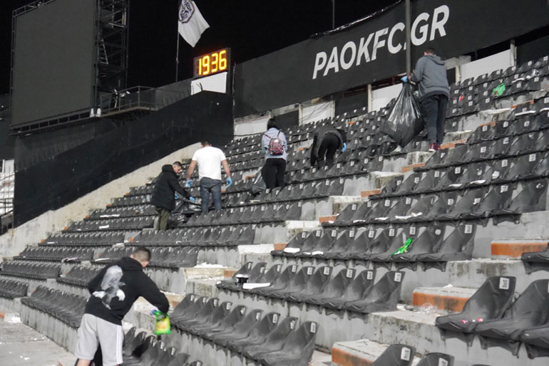 «Λαμπίκο» έκαναν τις κερκίδες του γηπέδου της Τούμπας μαθητές του 1ου ΕΠΑΛ Σταυρούπολης, οι οποίοι μετά τον αγώνα ΠΑΟΚ – Ατρόμητος μάζεψαν όλα τα ανακυκλώσιμα υλικά και τα εναπόθεσαν στους ειδικούς κάδους που διαθέτει η ΠΑΕ ΠΑΟΚ στις εισόδους των θυρών του γηπέδου.