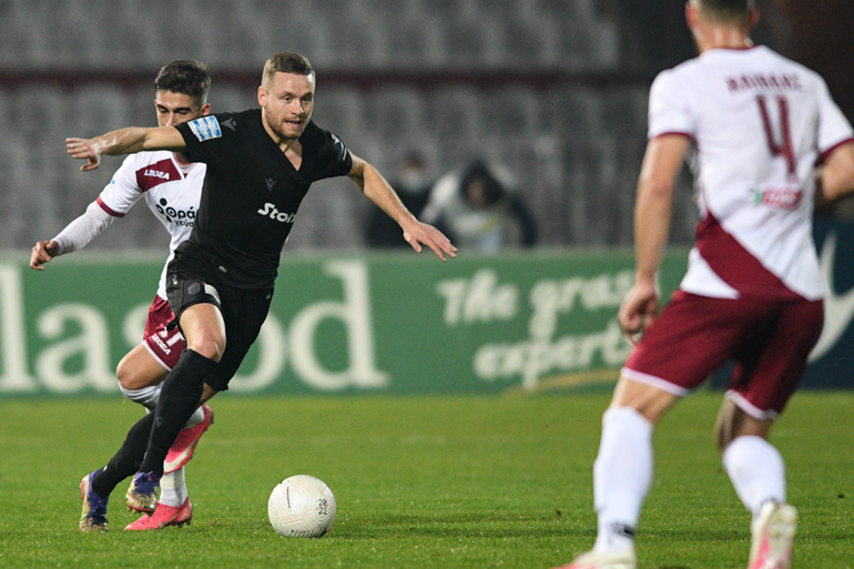 Με πίεση ψηλά και αρκετές στημένες φάσεις, οι φιλοξενούμενοι έψαξαν από νωρίς το γκολ, χωρίς ωστόσο να καταφέρουν να δημιουργήσουν «καθαρή» ευκαιρία. Μάλιστα, όποτε χρειάστηκε – στο 13’ και στο 23’ στα σουτ των Κάρολ Σφιντέρσκι και Δημήτρη Γιαννούλη, αντίστοιχα – ο Γκέργκελι Νάγκι ήταν… στη θέση του.