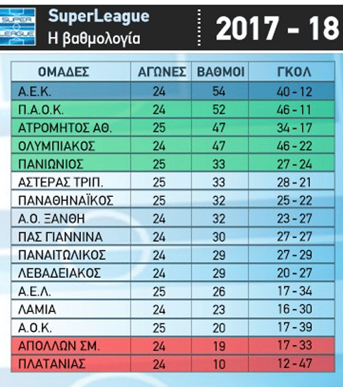Όσον αφορά στη βαθμολογία, μπορεί να παραμένει πρώτη η ΑΕΚ, ωστόσο μετά τη δικαίωση του ΠΑΟΚ από την επιτροφή Εφέσεων, η ομάδα του Λουτσέσκου είναι πλέον στο -2 από την κορυφή, έχοντας 52 βαθμούς.
