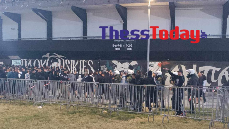 Από νωρίς βέβαια το κλίμα ήταν τεταμένο, με τις διμοιρίες των ΥΜΕΤ να παρατάσσονται για τη διεξαγωγή ενδελεχών σωματικών ελέγχων στους «ασπρόμαυρους» οπαδούς.