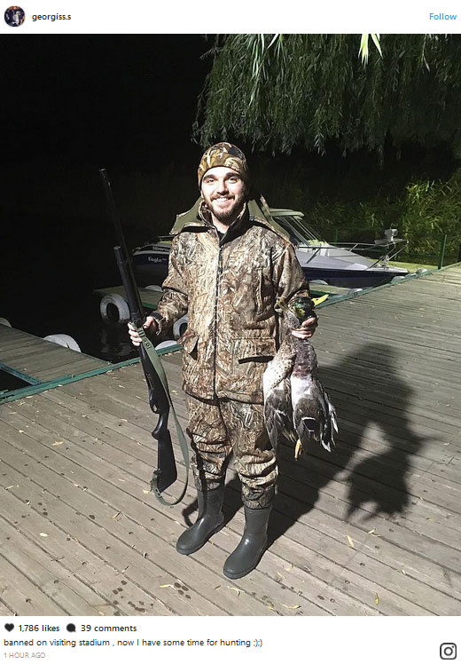 «Αφού μου απαγόρευσαν το γήπεδο, τώρα έχω χρόνο για κυνήγι», σχολίασε στο Instagram ο Γιώργος Σαββίδης.