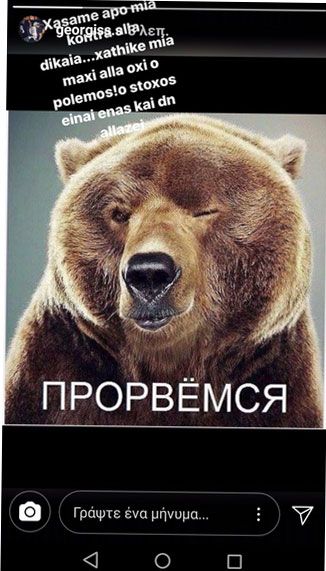 Ο γιος του Ιβάν Σαββίδη πόσταρε μια φωτογραφία με μια αρκούδα στον προσωπικό του λογαριασμό γράφοντας χαρακτηριστικά: «Χάσαμε από μια κόντρα αλλά δίκαια… Χάθηκε μια μάχη αλλά όχι ο πόλεμος! Ο στόχος είναι ένας, δεν αλλάζει».