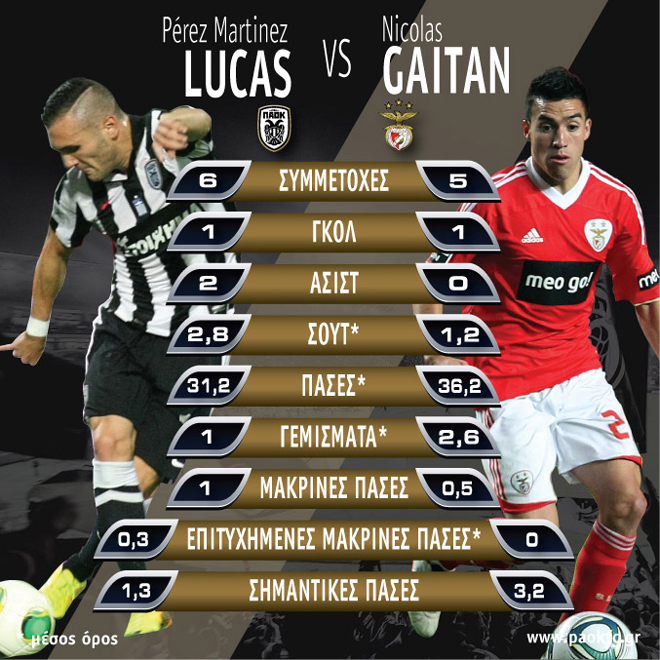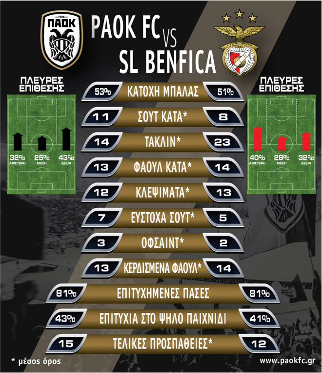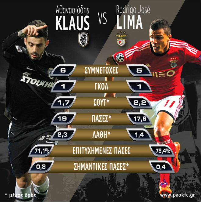 Για το pregame του σημαντικού αγώνα του ΠΑΟΚ κόντρα στην Μπενφίκα για τους 32 του UEFA Europa League, το www.paokfc.gr ετοίμασε μια σειρά από infographics που αναλύουν τα σημαντικότερα… ζευγάρια της αναμέτρησης και απεικονίζουν τις επιδόσεις των δύο ομάδων ως τώρα στην Ευρώπη.