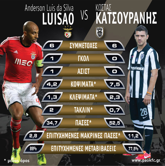 Η διαφορά αυτή στην αμυντική λειτουργία, βέβαια, δεν φαίνεται στο γράφημα με τις επιδόσεις των Κατσουράνη, Λουιζάο που στη φάση των ομίλων του Europa και του Champions League αντίστοιχα ήταν οι… πυλώνες της αμυντικής γραμμής των δύο ομάδων.