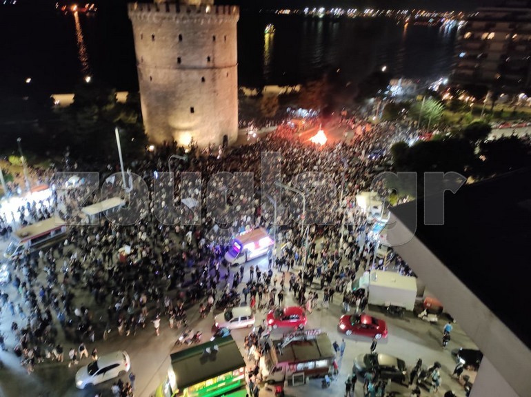 Οι πανηγυρισμοί των φίλων του ΠΑΟΚ στην Θεσσαλονίκη