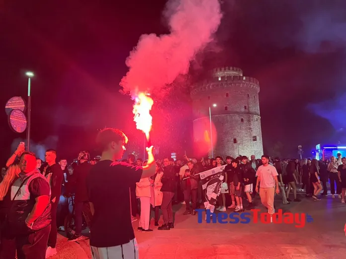 Γύρω στις 02:30 το ανοιχτό πούλμαν με τους πρωταθλητές Ελλάδας 2024 έφτασε στον Λευκό Πύργο με την… ασπρόμαυρη λαοθάλασσα να αποθεώνει τους παίκτες του Λουτσέσκου. Το ολονύχτιο πάρτι μόλις είχε αρχίσει. Ο ΠΑΟΚ, νωρίτερα, έστησε ένα μεγάλο πάρτι στην Τούμπα όπου γιόρτασε το 4ο πρωτάθλημα στην ιστορία του και πρώτο από το 2019 μαζί με τους οπαδούς του. Ο Βιεϊρίνια σήκωσε στον ουρανό τον τίτλο του πρωταθλητή και η νύχτα έγινε… μέρα αμέσως από τα καπνογόνα και τα βεγγαλικά.
