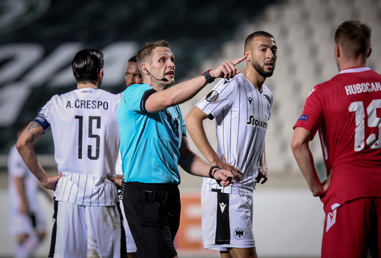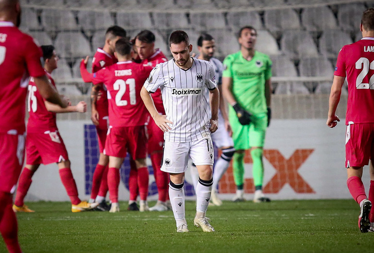 Ο ΠΑΟΚ γνώρισε την ήττα με 2-1 στην Κύπρο από την Ομόνοια και σε συνδυασμό με τη νίκη της Αϊντχόφεν επί της Γρανάδα έμεινε εκτός συνέχειας του Europa League. Οι Κύπριοι προηγήθηκαν στο 9’ με τον Κακουλή και ο «Δικέφαλος» ισοφάρισε στο 39’ με τον Τζόλη. Την πρώτη νίκη της Ομόνοιας στους ομίλους χάρισε στο 84’ με πέναλτι ο Γκόμεθ.