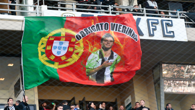 Στο πρώτο λεπτό των καθυστερήσεων ο τραυματίας Βιερίνια μπήκε εν μέσω αποθέωσης στον αγωνιστικό χώρο ο τραυματίας Βιεϊρίνια, για να παραλάβει το περιβραχιόνιο του αρχηγού και να υψώσει το τρόπαιο μέσα στην κατάμεστη Τούμπα.