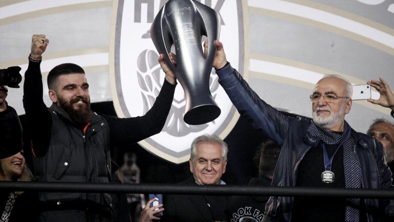 Τελευταίος, εν μέσω αποθέωσης από τον κόσμο της ομάδας, ανέβηκε ο πρόεδρος του ΠΑΟΚ Ιβάν Σαββίδης, με τον Βιερίνια να σηκώνει λίγο αργότερα την κούπα, πριν τα βεγγαλικά κάνουν τη νύχτα μέρα στη Θεσσαλονίκη.