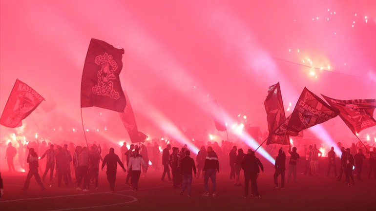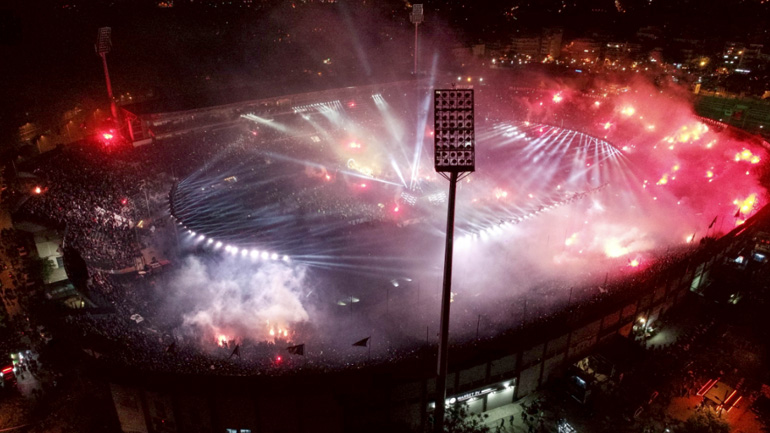 «Νάτοι, νάτοι οι πρωταθλητές» ήταν ένα από τα συνθήματα που δονούσαν την Τούμπα, η οποία είχε γεμίσει ασφυκτικά από αρκετά νωρίς, με τους οπαδούς του ΠΑΟΚ να πανηγηρίζουν με τη ψυχή τους το πολοπόθητο τρόπαιο, ζώντας στιγμές που περίμεναν τόσα χρόνια!