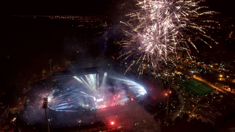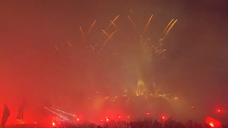Λίγο αργότερα άρχισε η φαντασμαγορική φιέστα του ΠΑΟΚ και με χιλιάδες βεγγαλικά και ασταμάτητα φωτορυθμικά πραγματοποιήθηκε η απονομή του επάθλου του φετινού πρωταθλήματος στον δικέφαλο του Βορρά.