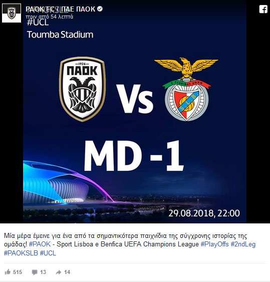 Μάλιστα την Τρίτη η «ασπρόμαυρη» ΠΑΕ έστειλε το δικό της μήνυμα για το κρίσιμο ματς με τους Λουζιτανούς, αναφέροντας σ’αυτό: «Μία μέρα έμεινε για ένα από τα σημαντικότερα παιχνίδια της σύγχρονης ιστορίας της ομάδας».