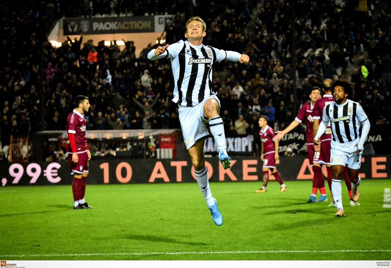 Ο ΠΑΟΚ επικράτησε 1-0 της ΑΕΛ στην Τούμπα σε παιχνίδι για την 11η αγωνιστική της Super League και «έπιασε» τον Ολυμπιακό στην κορυφή του βαθμολογικού πίνακα. Το γκολ που χάρισε τη νίκη στον «Δικέφαλο του Βορρά» σημείωσε στο 16’ ο Σφιντέρσκι. Στο τέλος του αγώνα ο Μιχαήλ της Λάρισας αποβλήθηκε με δεύτερη κίτρινη κάρτα.