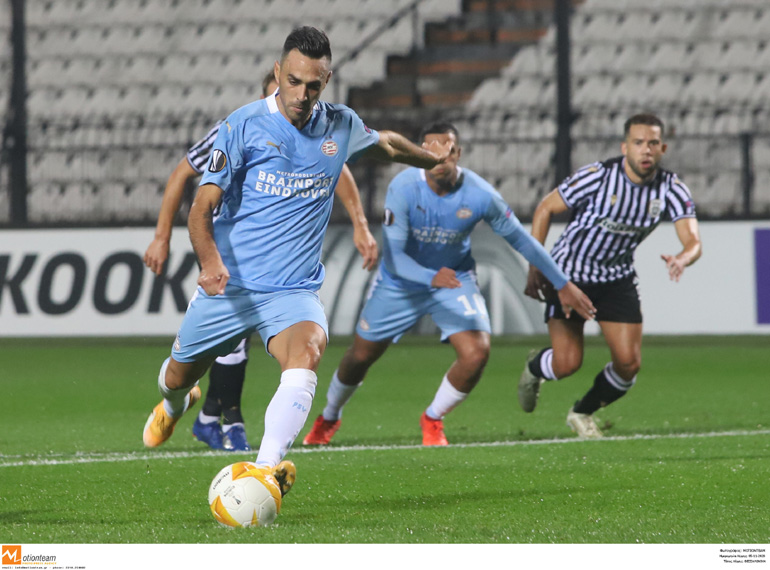 Ο ΠΑΟΚ συνέτριψε 4-1 την Αϊντχόφεν στην Τούμπα με επική ανατροπή στο δεύτερο ημίχρονο και πανηγύρισε την πρώτη του νίκη στο πλαίσιο της 3ης αγωνιστικής των ομίλων του Europa League. Οι Ολλανδοί προηγήθηκαν 1-0 με πέναλτι του Ζάχαβι στο 21’, όμως ο «Δικέφαλος» του Πάμπλο Γκαρσία απάντησε τέσσερις φορές. Στο 47’ ο Ζβαμπ ισοφάρισε, ο Αντρίγια Ζίφκοβιτς σκόραρε στο 56’ και το 67’, ενώ τέρμα σημείωσε και ο Τζόλης (58’).