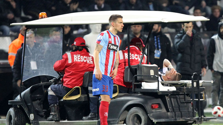 Πιο συγκεκριμένα, μόλις στο 9ο λεπτό σε μια μονομαχία του με τον Σταυρόπουλο ο άσος του «δικεφάλου του Βορρά» έμεινε στο έδαφος, καθώς αποκόμισε πρόβλημα στη μέση.