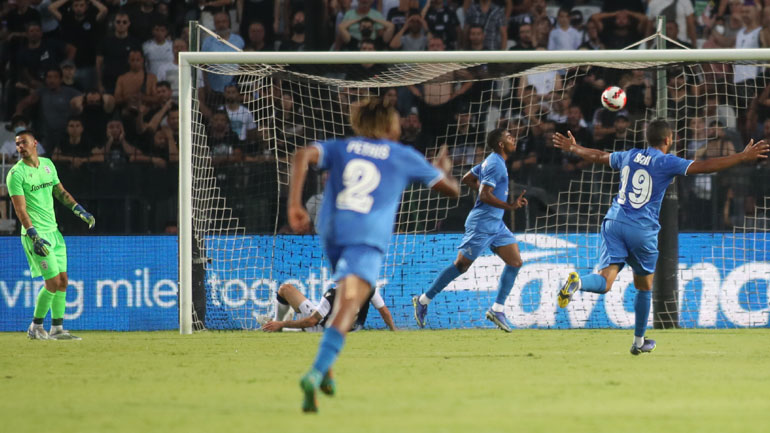 Ο ακραίος οπισθοφύλακας του ΠΑΟΚ προσπάθησε να δώσει πάσα στον Κοτάρσκι, ωστόσο ο Ρονάλντο πρόλαβε τη μεταβίβαση και, αφού απέφυγε και τον τερματοφύλακα των γηπεδούχων, έκανε το 0-1 προ κενής εστίας.