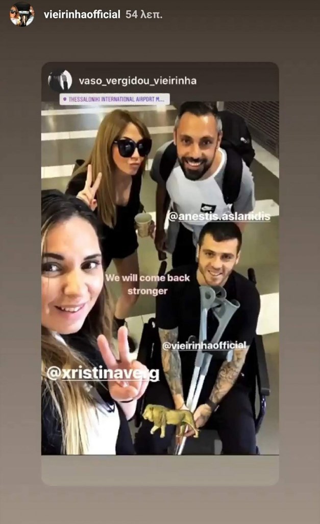 Mε προορισμό την Πορτογαλία αναχώρησε την Πρωτομαγιά ο Αντρέ Βιεϊρίνια μαζί με την σύζυγό του, Βάσω Βεργίδου και μέλη της οικογενείας του, προκειμένου να προετοιμαστεί για την επέμβαση αποκατάστασης του χιαστού, που θα πραγματοποιηθεί στις 6 Μαΐου από τον γιατρό της εθνικής Πορτογαλίας, Ζοζέ Νορόνια σε συνεργασία με το γιατρό του ΠΑΟΚ, Μανόλη Παπακώστα.