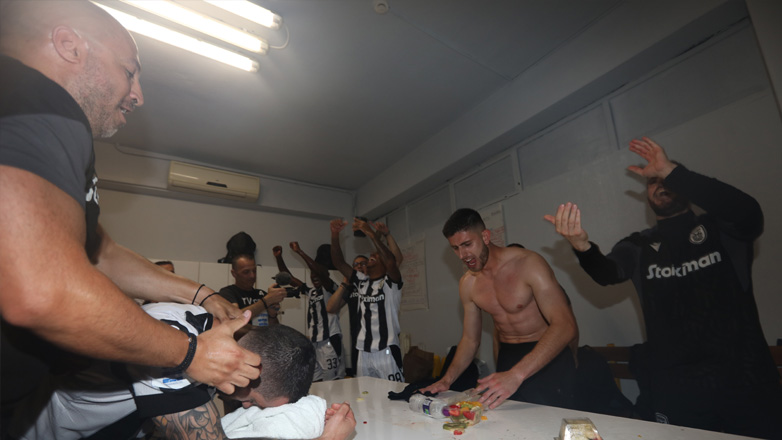 Όπως είναι φυσικό στα αποδυτήρια στήθηκε ένα τεράστιο πάρτι με πρωταγωνιστές τους ποδοσφαιριστές που γιόρτασαν σαν μικρά παιδιά αυτό το πρωτάθλημα.