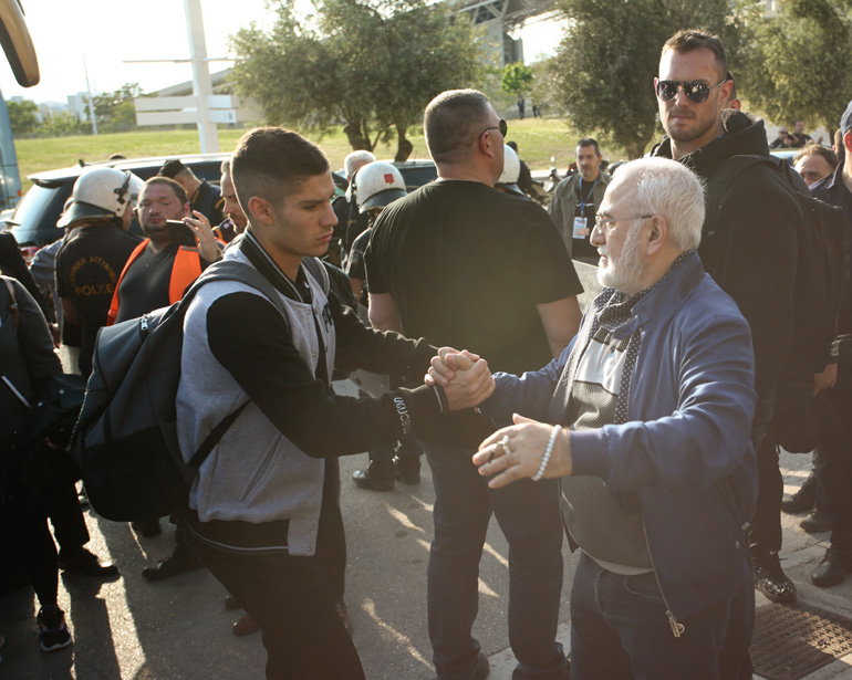 Περίπου 15 λεπτά πριν τις 19:00 έφτασε στο ΟΑΚΑ η αποστολή του ΠΑΟΚ για τον τελικό με την ΑΕΚ (20:30, Cosmote Sport 1). Ο Ιβάν Σαββίδης ακολούθησε την αποστολή από το ξενοδοχείο ως το γήπεδο και χαιρέτησε έναν έναν τους παίκτες πριν μπουν στα αποδυτήρια, πριν αποχωρήσει.