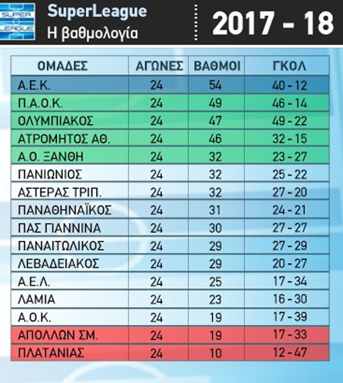 Δείτε πως έχει διαμορφωθεί η βαθμολογία μετά την αφαίρεση τριών βαθμών από τον ΠΑΟΚ και την κατακύρωση του αγώνα υπέρ του Ολυμπιακού: