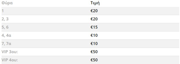 Αναλυτικά, οι τιμές των εισιτηρίων είναι οι εξής: