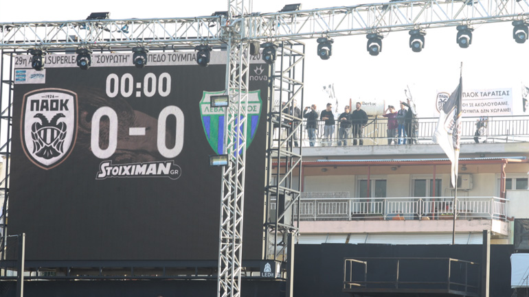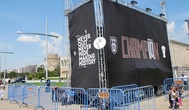 Συγκεκριμένα, στον Λευκό Πύργο είχε στηθεί γιγαντοοθόνη από την οποία οι οπαδοί του ΠΑΟΚ είχαν τη δυνατότητα να παρακολουθήσουν τον αγώνα με τους Βοιωτούς.