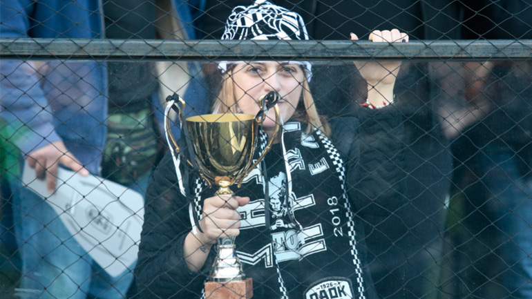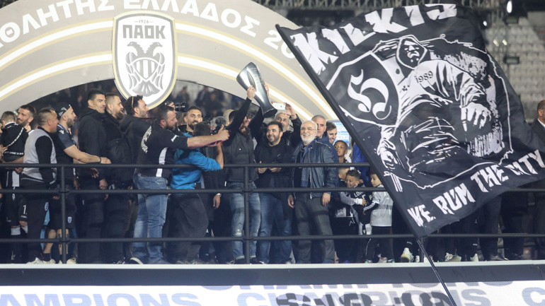 «Νάτοι, νάτοι οι πρωταθλητές» ήταν ένα από τα συνθήματα που δονούσαν την Τούμπα, η οποία είχε γεμίσει ασφυκτικά από αρκετά νωρίς, με τους οπαδούς του ΠΑΟΚ να πανηγηρίζουν με τη ψυχή τους το πολοπόθητο τρόπαιο, ζώντας στιγμές που περίμεναν τόσα χρόνια!