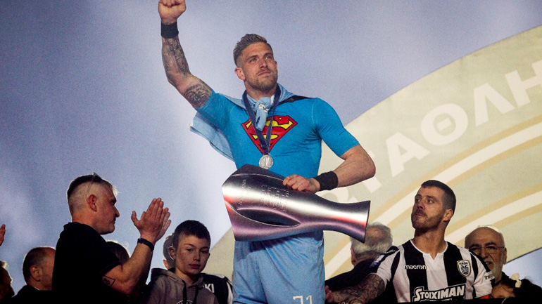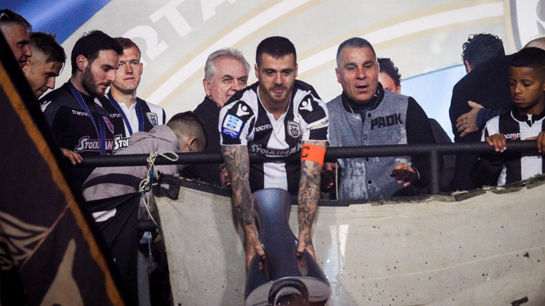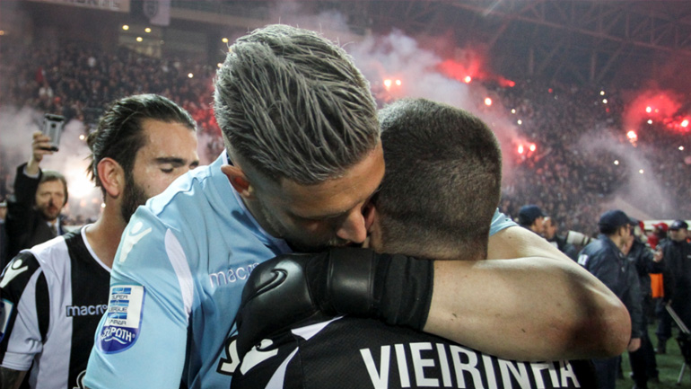 Στο πρώτο λεπτό των καθυστερήσεων ο τραυματίας Βιερίνια μπήκε εν μέσω αποθέωσης στον αγωνιστικό χώρο ο τραυματίας Βιεϊρίνια, για να παραλάβει το περιβραχιόνιο του αρχηγού και να υψώσει το τρόπαιο μέσα στην κατάμεστη Τούμπα.