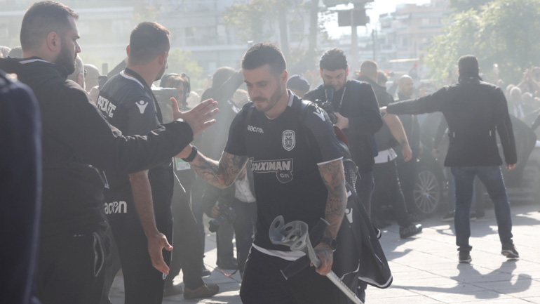 Η αποστολή της ομάδας του ΠΑΟΚ έφτασε στο γήπεδο της Τούμπας γύρω στις 17:30, με τον Ιβάν Σαββίδη να υποδέχεται τους ποδοσφαιριστές και το τεχνικό επιτελείο, στο καθιερωμένο πια τελετουργικό που συνηθίζει όλη τη χρονιά.