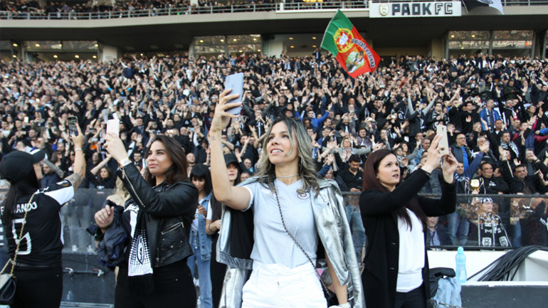 Λίγο αργότερα άρχισε η φαντασμαγορική φιέστα του ΠΑΟΚ και με χιλιάδες βεγγαλικά και ασταμάτητα φωτορυθμικά πραγματοποιήθηκε η απονομή του επάθλου του φετινού πρωταθλήματος στον δικέφαλο του Βορρά.