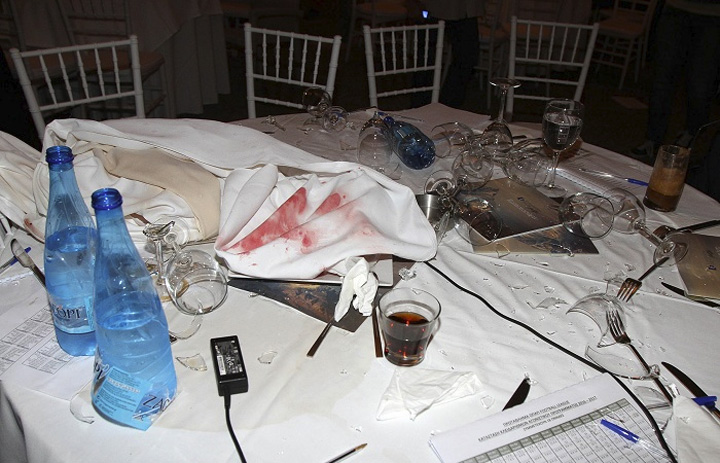 Οι δράστες έσπασαν κάμερες και λάπτοπ, τραυμάτισαν έναν φωτογράφο, ενώ παράλληλα συγκρούστηκαν με τους άνδρες ασφαλείας και εξύβρισαν τα μέλη της ΕΠΟ και τον πρόεδρο Γιώργο Γκιρτζίκη, ο οποίος ήταν παρών.