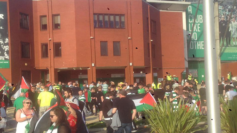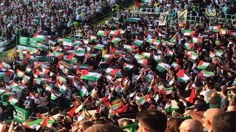 Πολλοί οπαδοί της Σέλτικ σήκωσαν ψηλά τις σημαίες της Παλαιστίνης και πριν τον αγώνα της ομάδος τους με την ισραηλινή ομάδα Χάποελ Μπερ Σεβά.