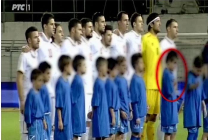 Μάλιστα δημοσιεύεται φωτογραφία, αλλά και βίντεο, απο την στιγμή της ανάκρουσης του εθνικού ύμνου της Σερβίας, όπου διακρίνονται τρία απο τα εννέα παιδιά που είναι μπροστά απο τους Σέρβους ποδοσφαιριστές, τα οποία έχουν σταυρώσει τα χέρια τους στο στήθος, σχηματίζοντας – όπως γράφει το δημοσίευμα – τον Αλβανικό αετό, που αποτελεί εθνικό σύμβολο της Αλβανίας και της σημαίας της χώρας.