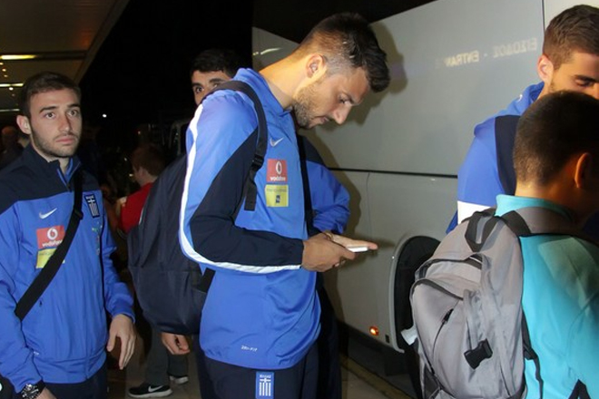 Οι προβληματισμένοι Έλληνες διεθνείς, μετά την ήττα-σοκ από τα Νησιά Φερόε, χειροκροτήθηκαν ζεστά από τα μέλη του “Γαλανόλευκου Φάρου”, με 30 σχεδόν άτομα να δίνουν το παρών στο αεροδρόμιο “Δασκαλογιάννης” για να τους υποδεχτούν και να τους δώσουν δύναμη ενόψει της συνέχειας που ακολουθεί.