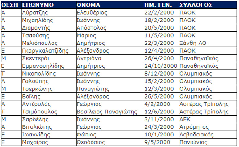Οι παίκτες που έχουν κληθεί για τους Μεσογειακούς Αγώνες από τον ομοσπονδιακό τεχνικό Γιάννη Γκούμα, είναι οι εξής: