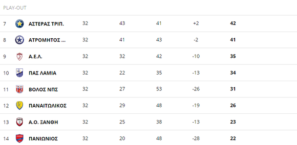 Όσον αφορά στον Πανιώνιο θα αποφύγει την τελευταία θέση και τον απευθείας υποβιβασμό αν κερδίσει στο Περιστέρι και δεν φύγει με τη νίκη η Ξάνθη από τη Λάρισα.