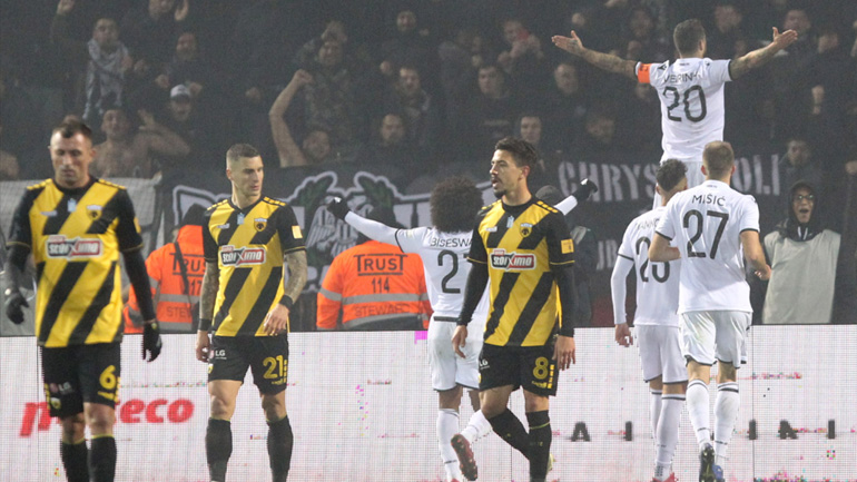 Ο Μάνταλος σούταρε, ωστόσο είδε την μπάλα να χτυπάει στο δοκάρι του Ζίφκοβιτς, ο οποίος ενήργησε σωτήρια στη νέα μεγάλη ευκαιρία των «κιτρινόμαυρων» στο 80′, όταν απέκρουσε το σουτ του Ολιβέιρα.