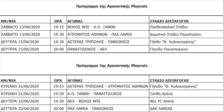 Tο πρόγραμμα της 2ης και της 3ης αγωνιστικής των πλέι άουτ της Super League έχει ως εξής: