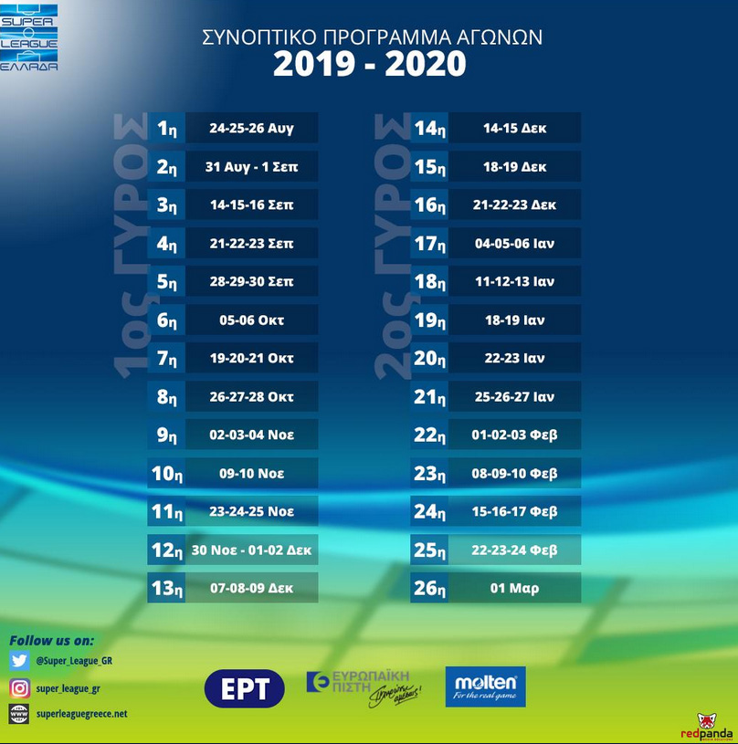 Το συνοπτικό πρόγραμμα της Super League 1 για την περίοδο 2019-20: