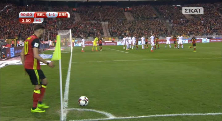 Το παιχνίδι της Ελλάδας στο «Roi Baudouin» των Βρυξελλών με το Βέλγιο για την 5η αγωνιστική του 8ου ομίλου των προκριματικών του Παγκοσμίου Κυπέλλου βρίσκεται στο τέταρτο και τελευταίο λεπτό των καθυστερήσεων με το σκορ στο 1-1.