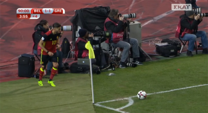 Με το ρολόι να σημαδεύει το 94’ η περιοχή του Καπίνο γεμίζει παίκτες, ενώ ο Καράσκο ετοιμάζεται να εκτελέσει κόρνερ! Σε αυτό το σημείο όμως οι «άρχοντες» του αγώνα με επικεφαλής τον Γερμανό διαιτητή Φέλιξ Μπριχ υπέπεσαν σε λάθος, καθώς ο άσος των «κόκκινων διαβόλων» δεν έστησε την μπάλα στο σωστό σημείο εκτέλεσης. Το βίντεο του αγώνα είναι και ο αδιάψευστος μάρτυρας. Δείτε το: