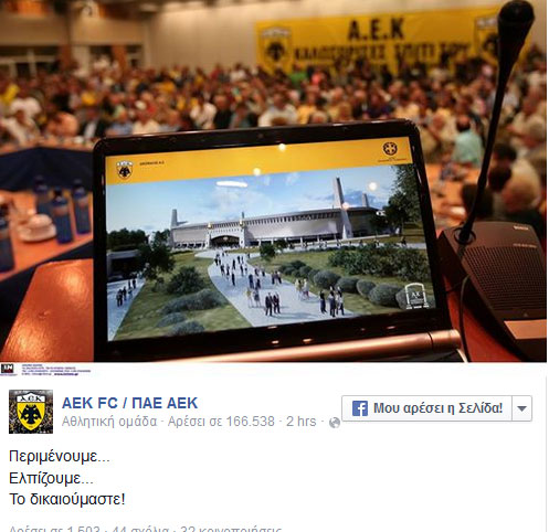 Αυτή η είδηση όπως είναι φυσικό έγινε δεκτή με μεγάλη χαρά από τους ιθύνοντες της ΑΕΚ, οι οποίοι ανέβασαν στο λογαριασμό της ομάδας στο Facebook το λιτό, αλλά χαρακτηριστικό μήνυμα: