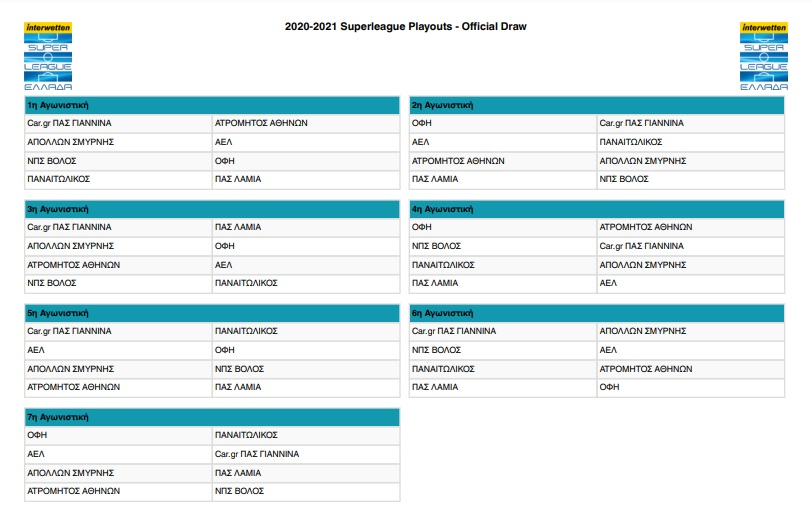 Μετά την ηλεκτρονική κλήρωση των πλέι οφ της Super League πραγματοποιήθηκε την Καθαρά Δευτέρα και η αντίστοιχη των πλέι άουτ του πρωταθλήματος, όπου εκεί θα γίνει μεγάλη μάχη για την παραμονή στη μεγάλη κατηγορία του ελληνικού ποδοσφαίρου.