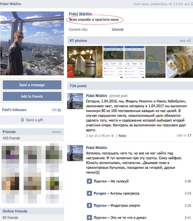 O Νικίτιν άφησε μάλιστα ένα μήνυμα προς τους φίλους του στο Facebook γράφοντας «Σας ευχαριστώ και συγχωρέστε με».