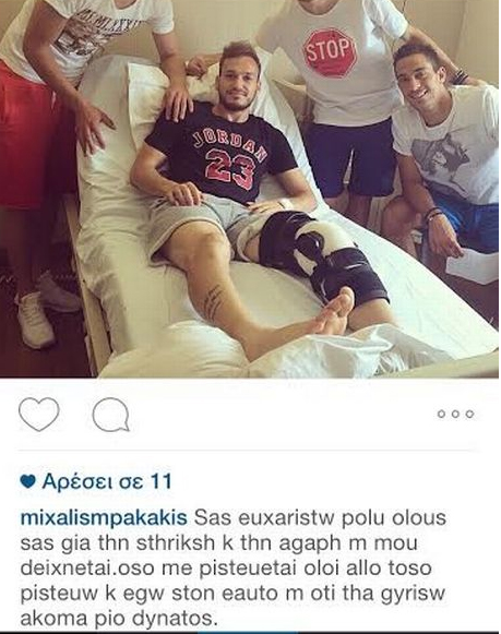 Ο Μιχάλης Μπακάκης της ΑΕΚ υποβλήθηκε σε πετυχημένη επέμβαση μετά τον σοβαρό τραυματισμό που υπέστη στην αναμέτρηση με τον Ολυμπιακό Βόλου. Ο 24χρονος που είχε δίπλα του τους συμπαίκτες στην Ένωση, μέσω του λογαριασμού στο Instagram ευχαρίστησε τον κόσμο για τις ευχές του!