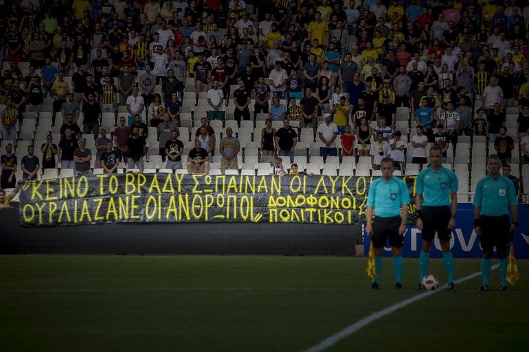 Οι οπαδοί της ΑΕΚ ανάρτησαν πανό μόνο με περιεχόμενο τις φωτιές στην Ανατολική Αττική στο ΟΑΚΑ στο φιλικό με την Γαλατάσαραϊ. Οι οργανωμένοι της Ένωσης έγραψαν: